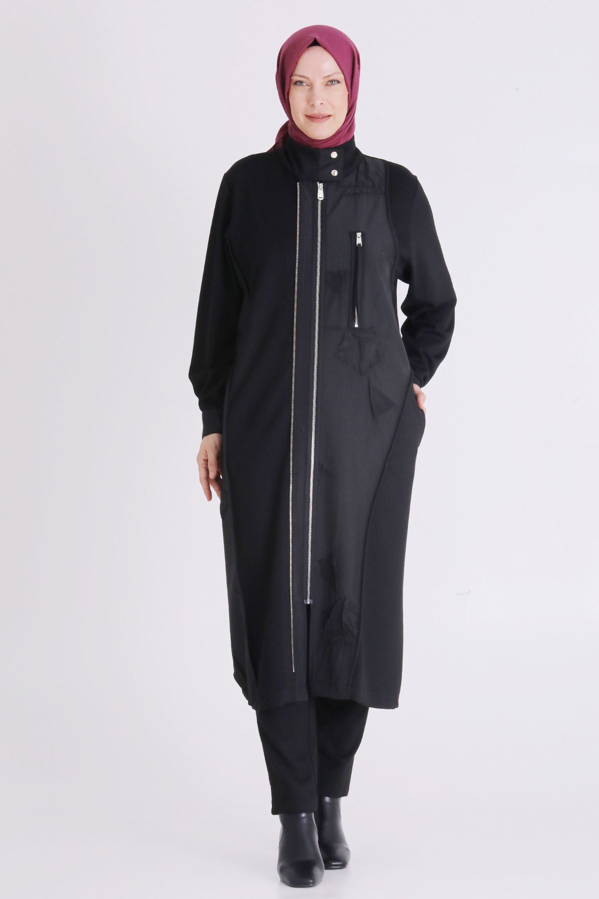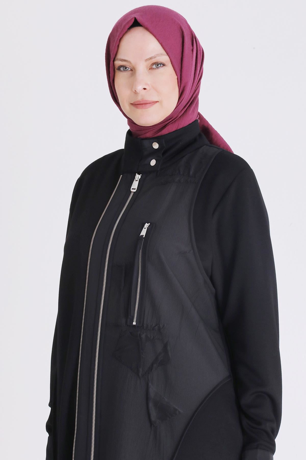 Ürün Detayları: Önden fermuarlı jakar kumaş kombinli ürünümüz dik yaka ve ceplidir.