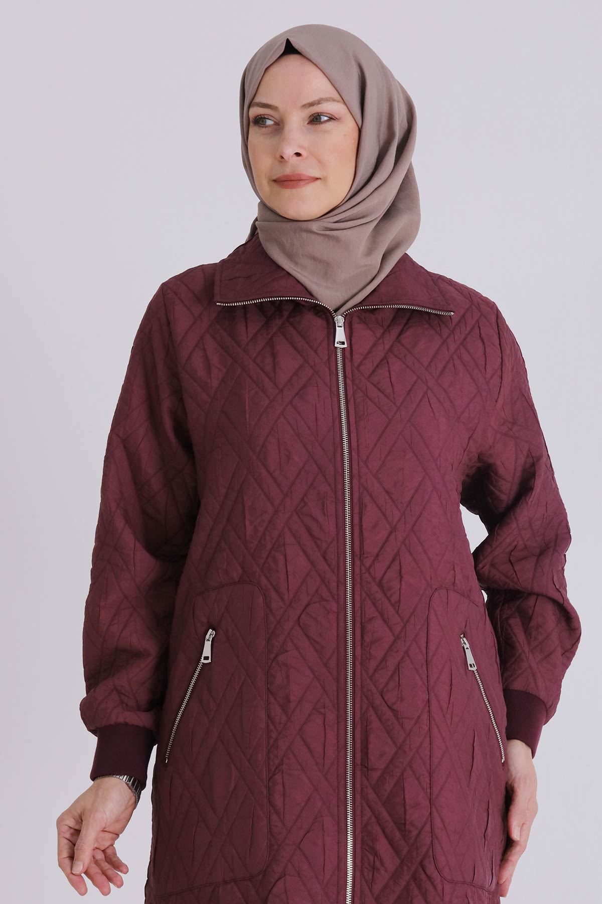 Büyük Beden Tesettür Kapitone Kap 2551 Vişne
