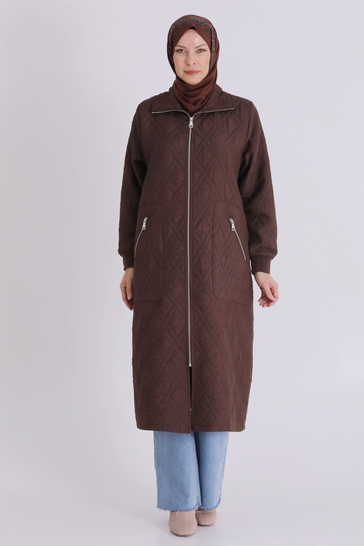 Büyük Beden Tesettür Kapitone Kap 2551 Kakao