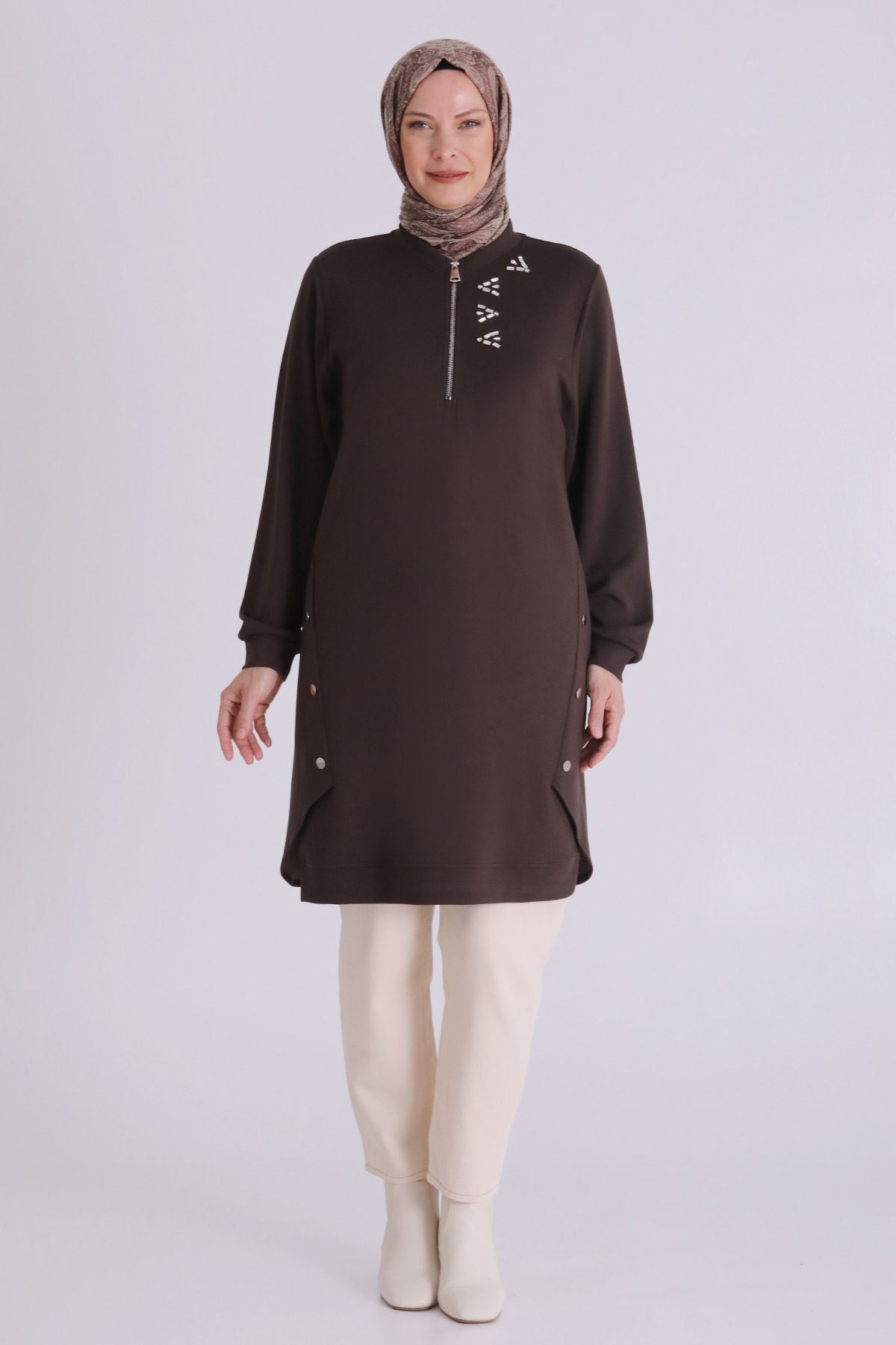 Büyük Beden Tesettür Tunik 2069 Kahve