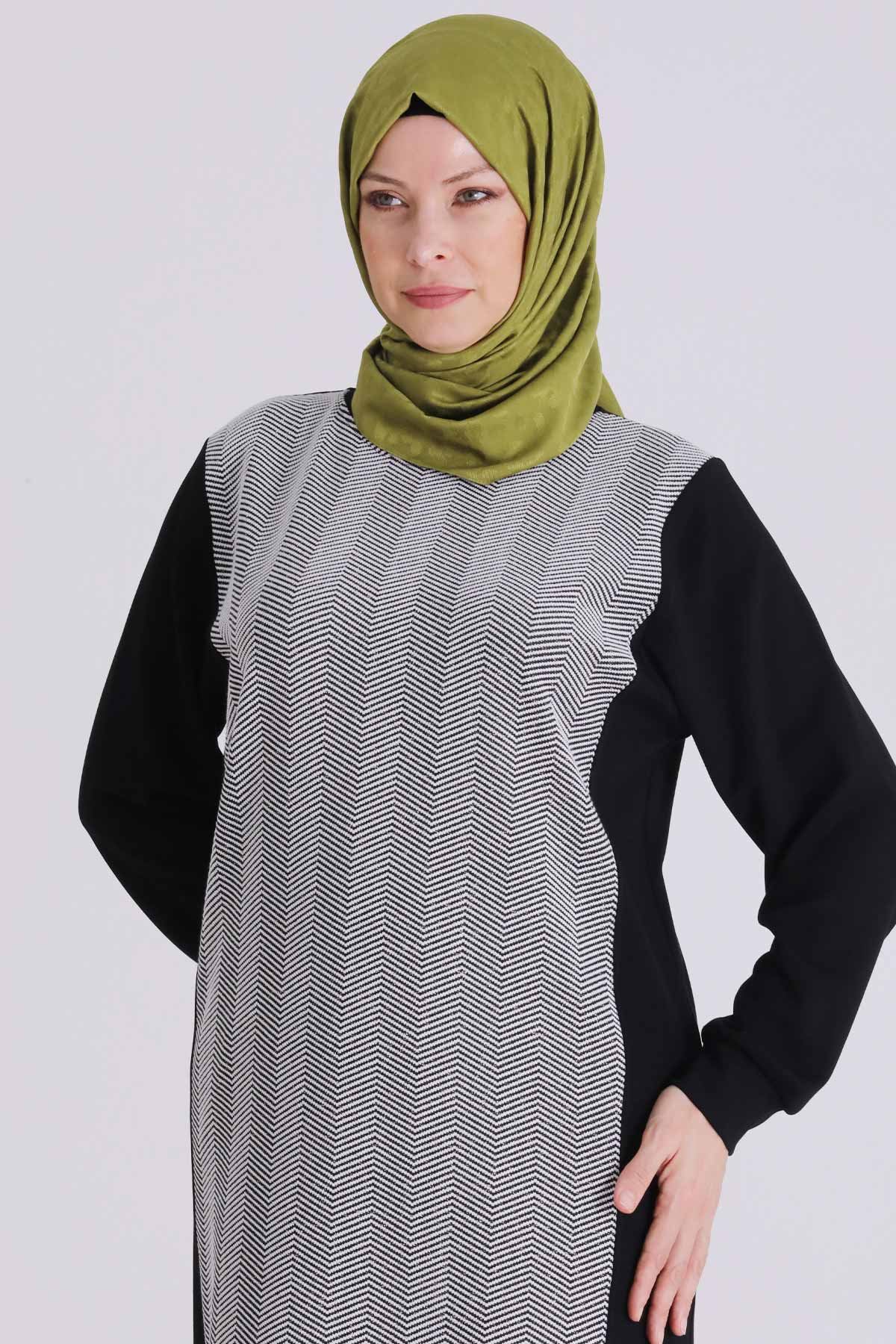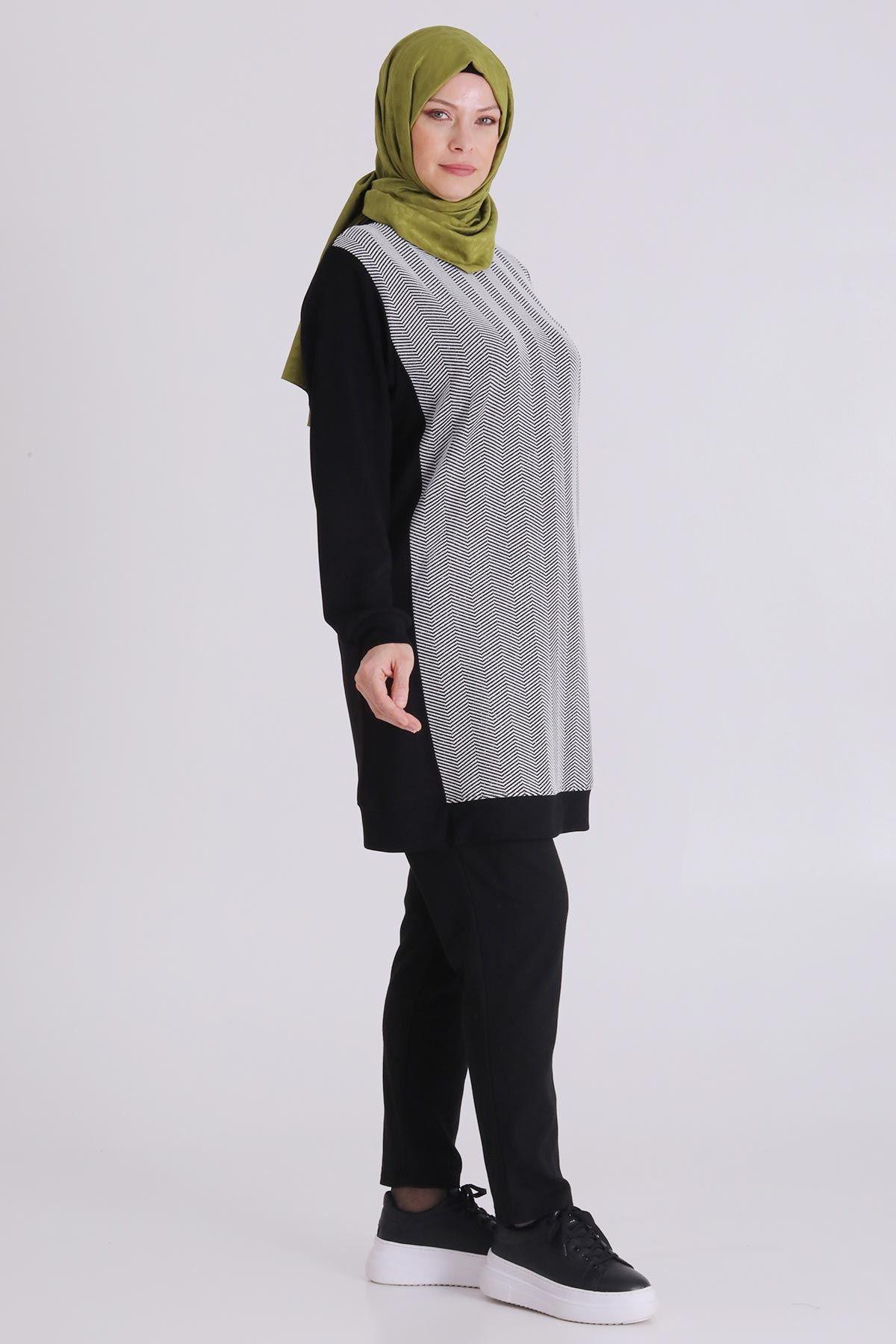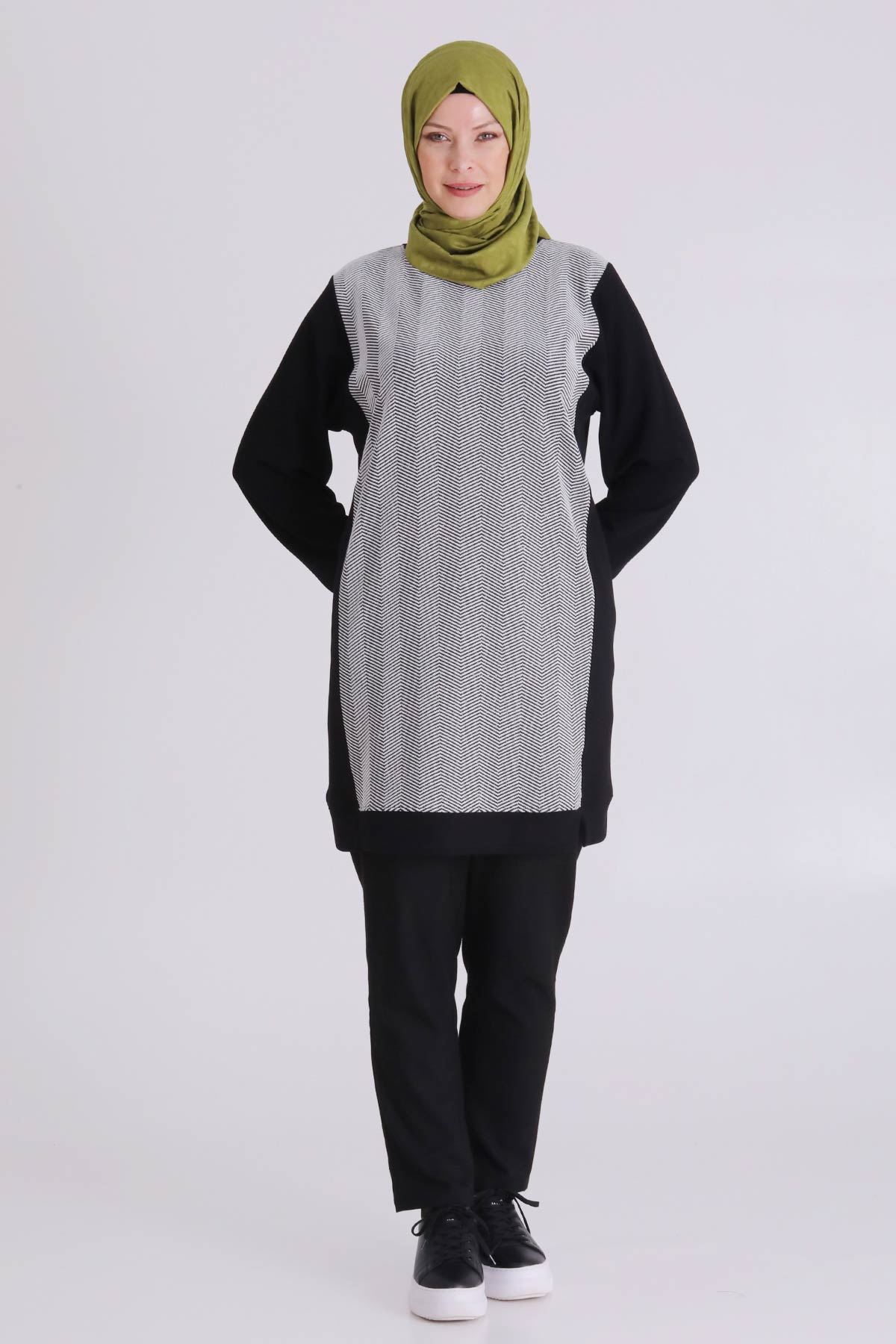 Büyük Beden Tesettür Tunik 1001 Siyah-Ekru